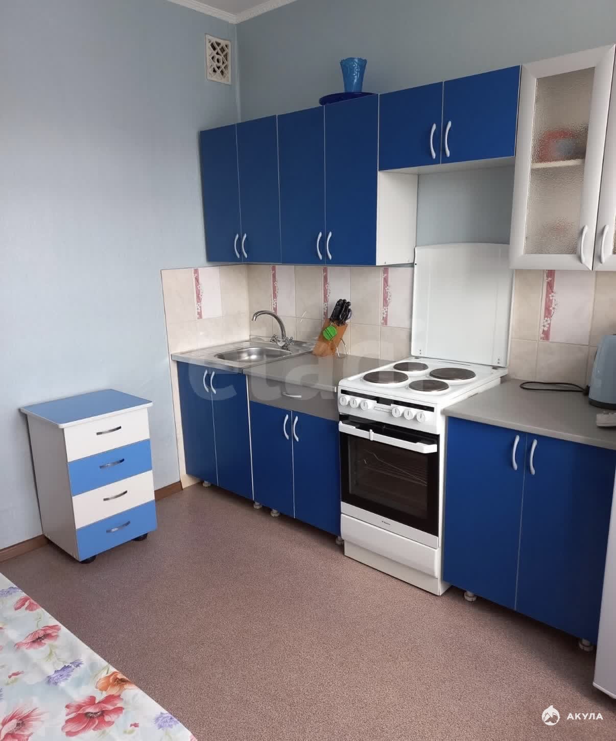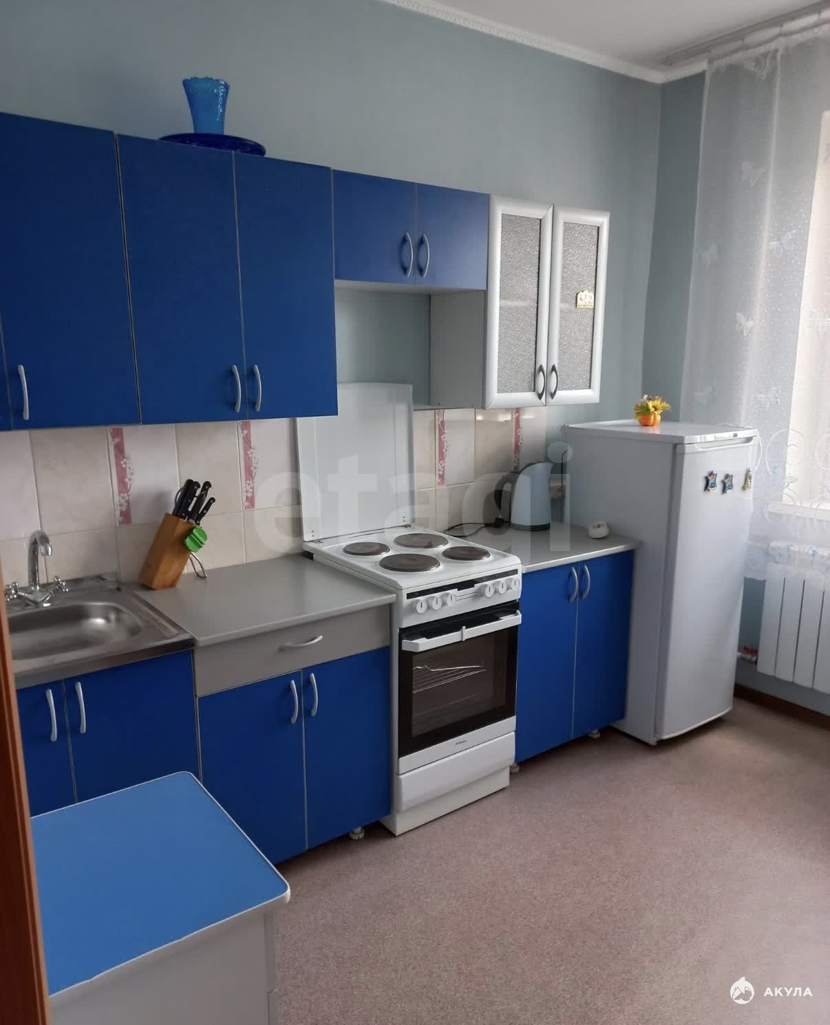 В квартире имеется вся необходимая техника и мебель:кухонный гарнитур, кухонный стол, стулья, холодильник, электрическая плита с духовым шкафом, чайник, диван, стол, журнальный столик, шкаф горка , кровать шкаф, шкафы в прихожей, стиральная машинка.