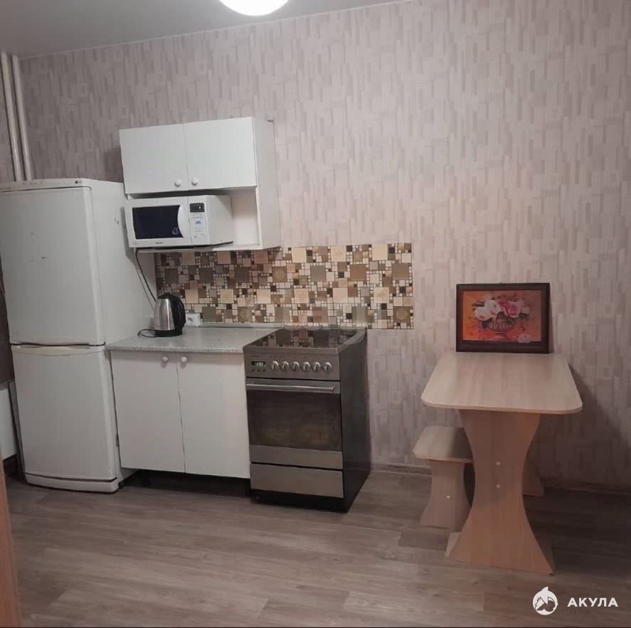 В квартире имеется вся необходимая техника и мебель: кухонный гарнитур, кухонный стол, стулья, диван, кровать, электрическая плита, холодильник, микроволновая печь, стиральная машинка