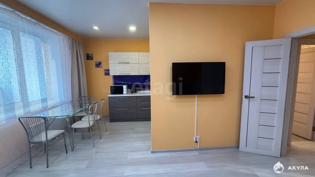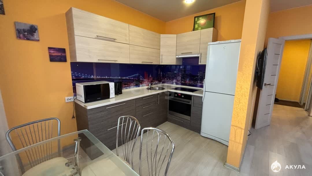 Имеется все необходимое для комфортного проживания: кух. гарнитур, варочная панель с духовым шкафом, микроволновая печь, вытяжка, холодильник, обеденная группа, шкаф-купе в спальне и прихожей, диван, двуспальная кровать, стиральная машина, телевизор. Большой балкон 19м².