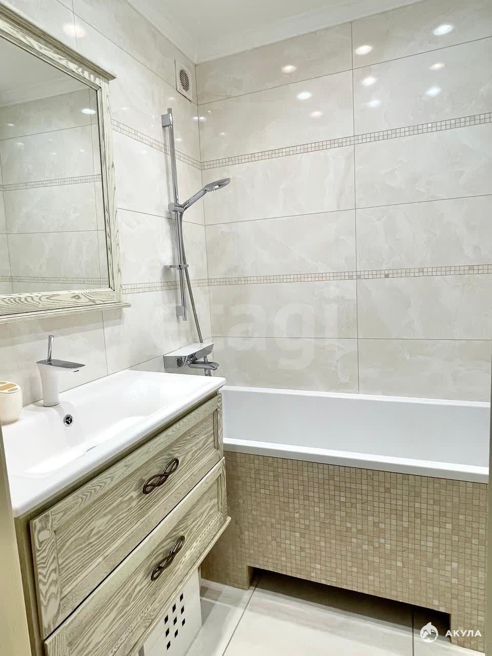 • Европейское качество: В санузлах использованы европейский керамогранит и мозаика, установлена качественная европейская сантехника.