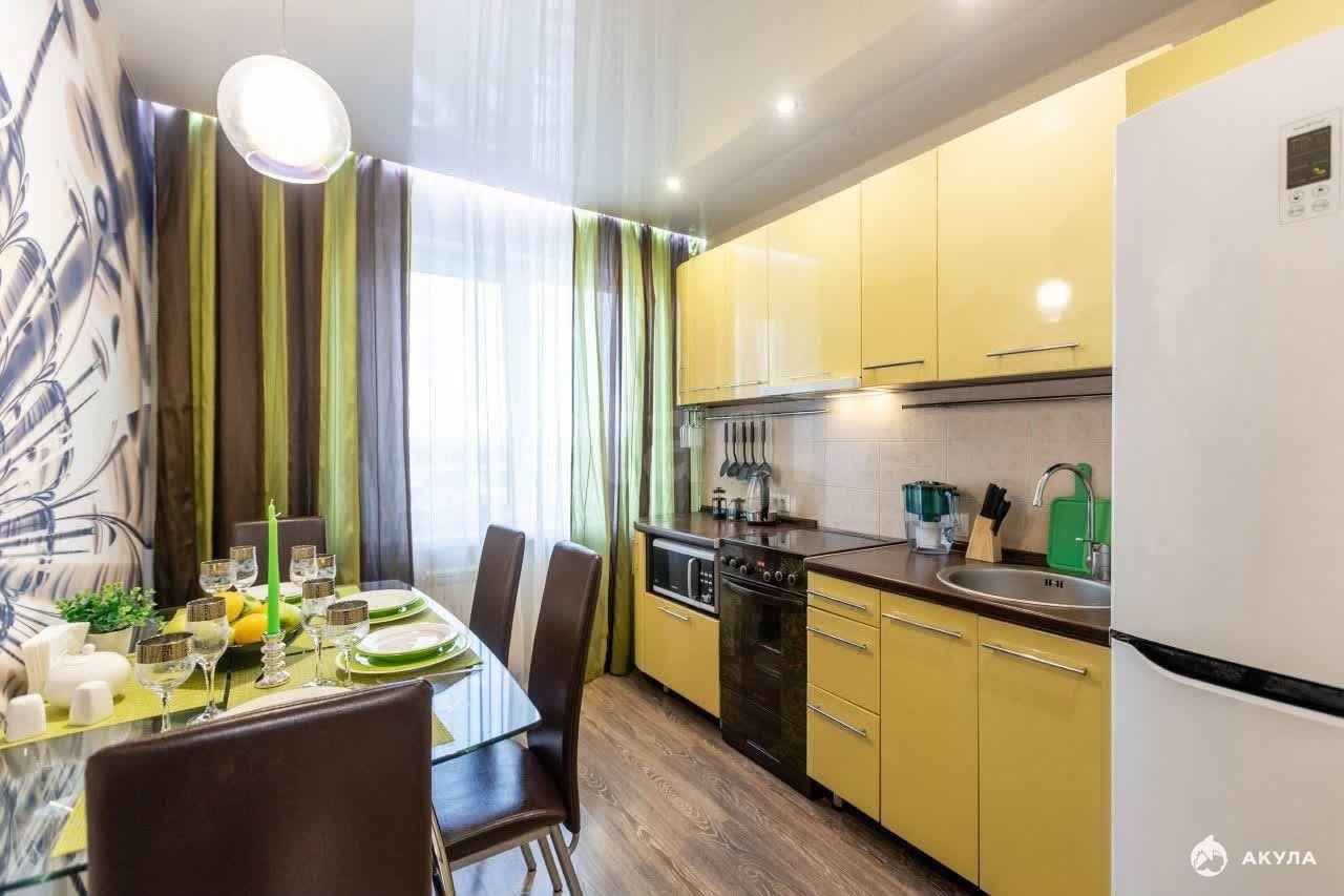 В квартире есть все для комфортного проживания: места для хранения, диван, ТВ, кровати, кухонный гарнитур, обеденная группа, холодильник, чайник, СВЧ печь, эл. плита, СМА.