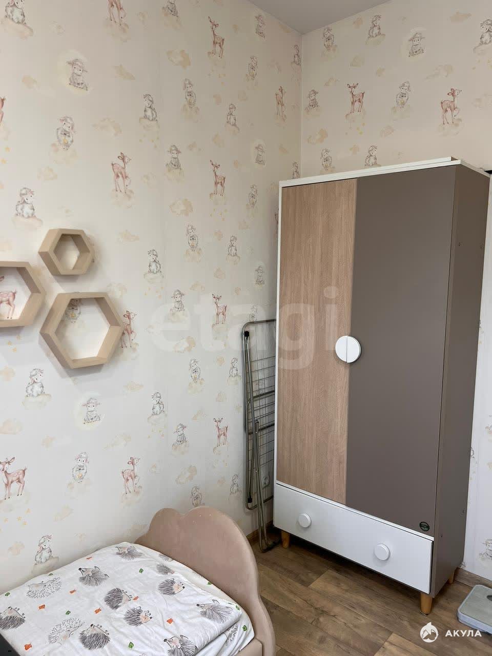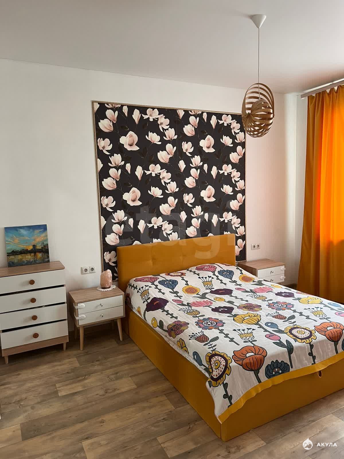 В квартире имеется: Диван, кровать, шкаф, кухонный гарнитур, кухонный стол, плита, холодильник, стиральная машина, телевизор.