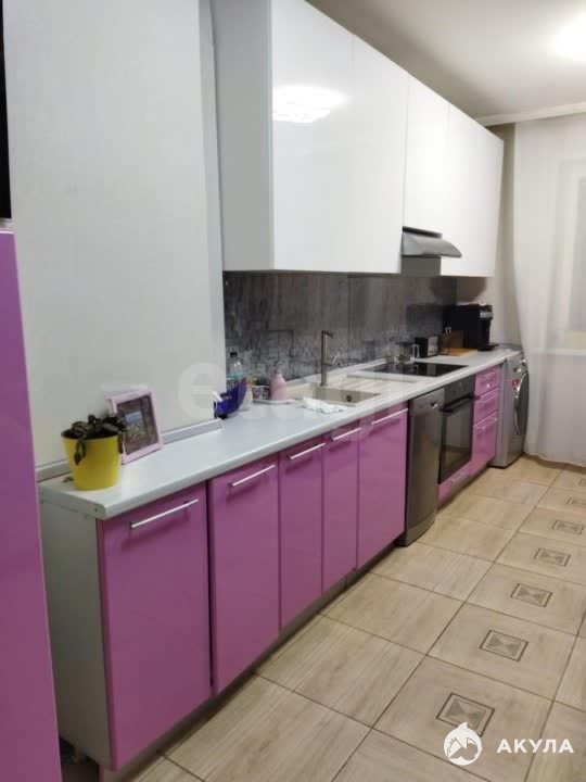 ・Площадь кухни — 17 м². Кухня без верхних шкафов и без духового шкафа (как на фото). В наличии: холодильник, стиральная машина, варочная поверхность, микроволновка, чайник, стол с табуретками.
