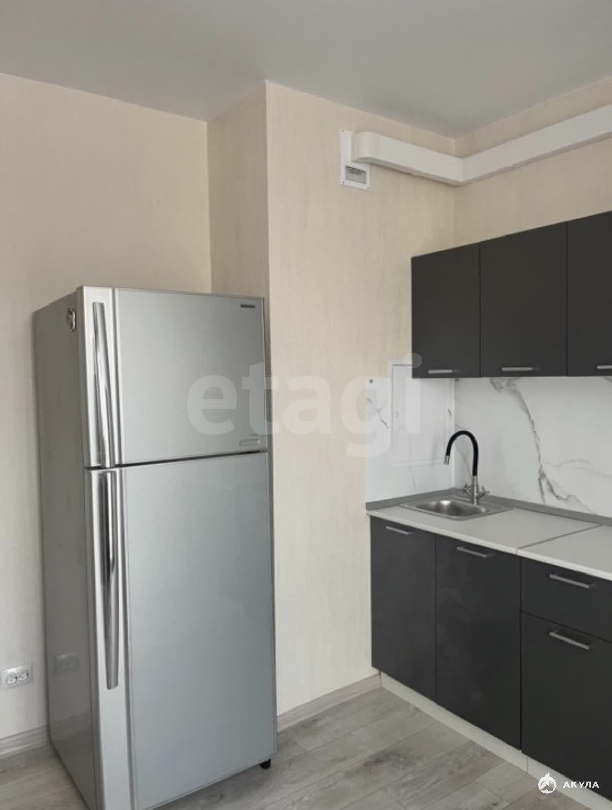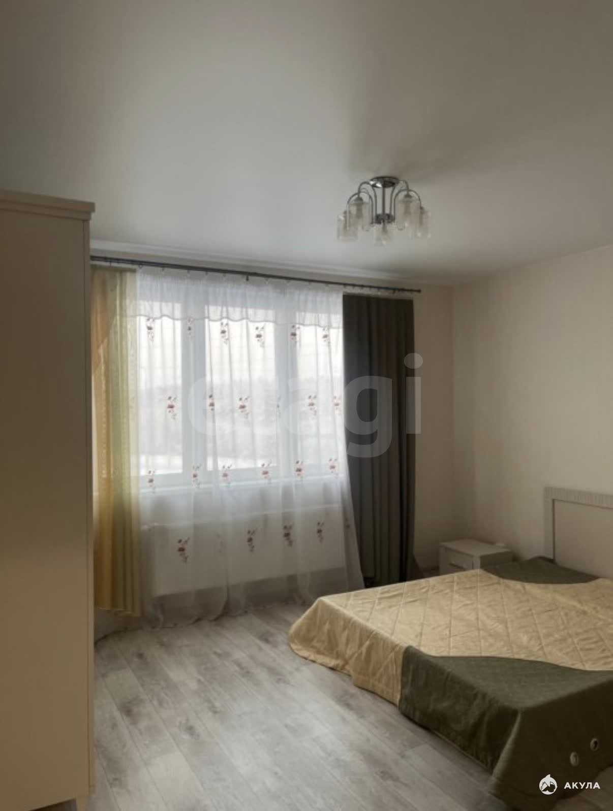 В квартире имеется: кухонный гарнитур, обеденный стол, стулья, холодильник, чайник, диван, тумба под телевизор, двуспальная кровать, шкаф, стиральная машинка, пылесос. Пустая комната под детскую или кабинет.