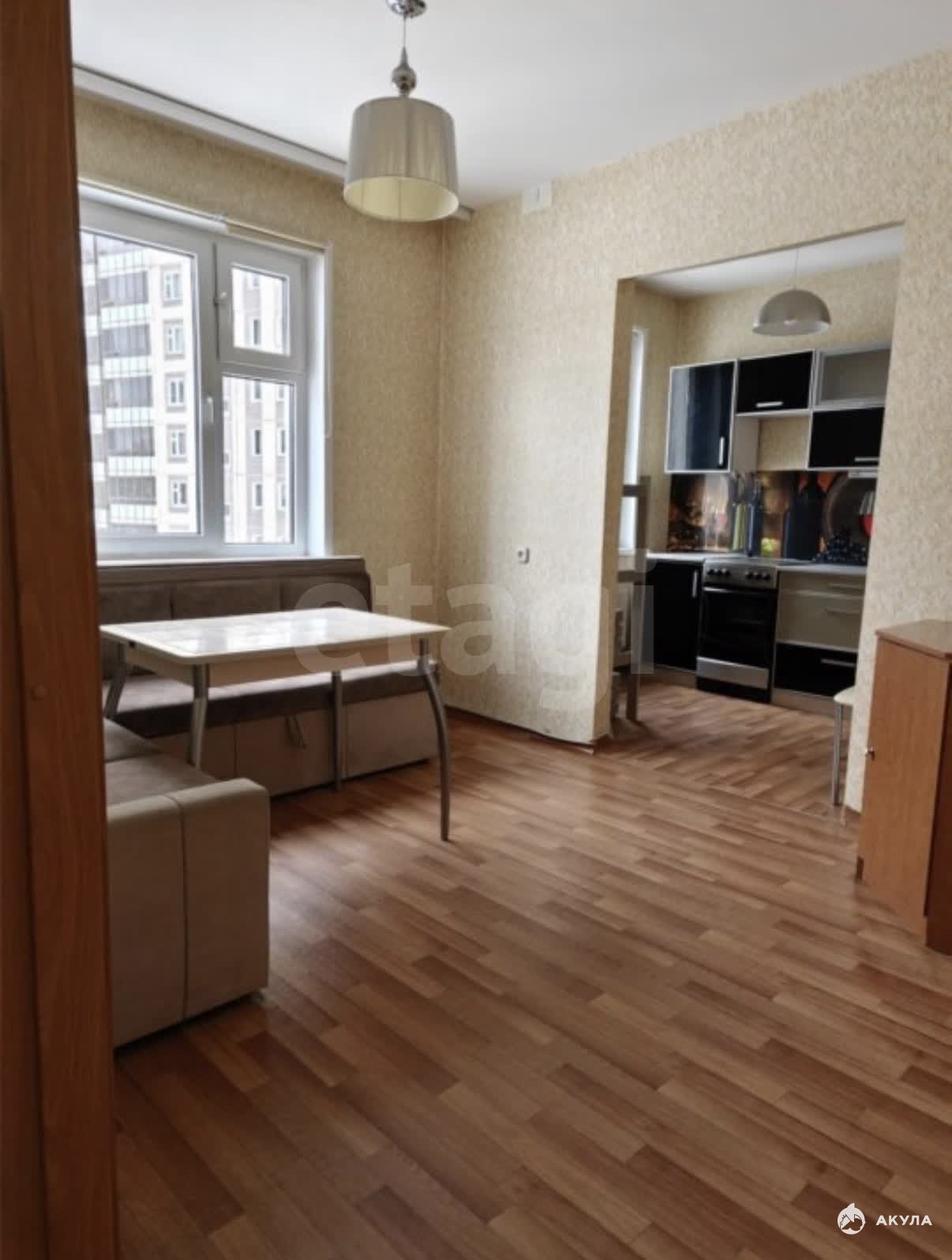В квартире имеется: кухонный гарнитур, обеденный стол, стулья, плита, гардеробная, большой шкаф, детский уголок. Бытовую технику можно приобрести в счет аренды.