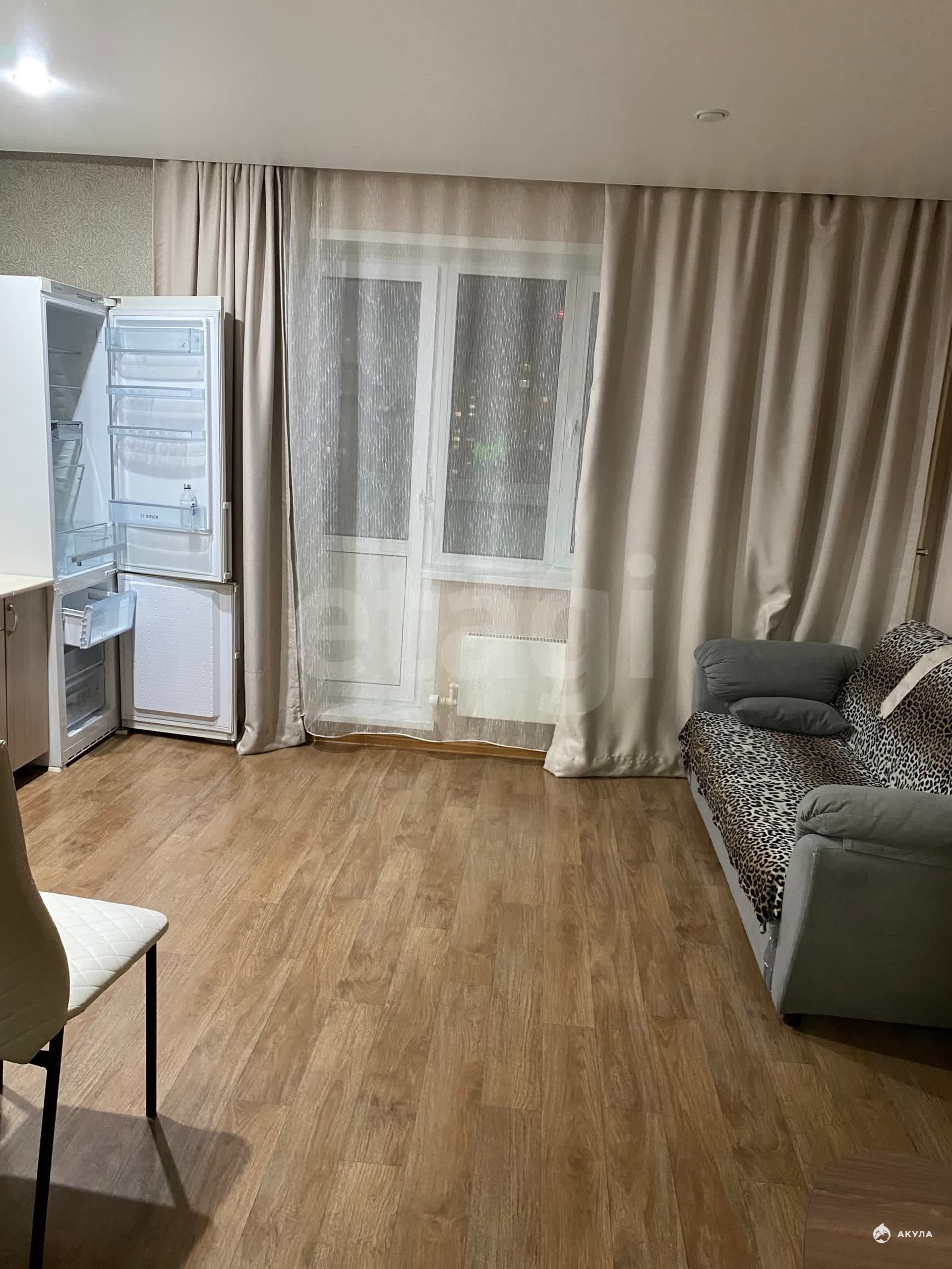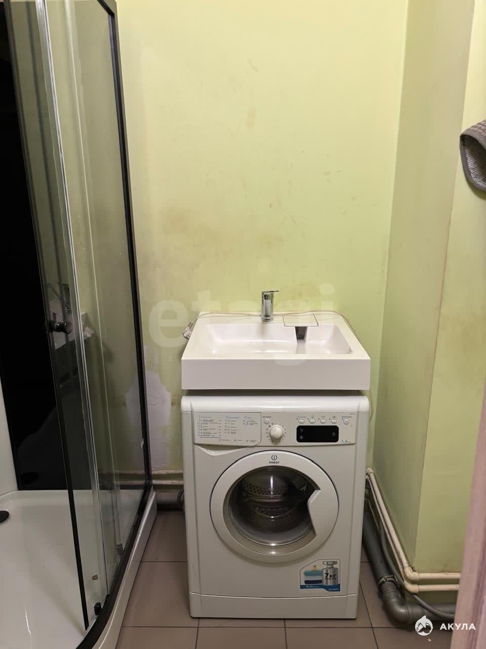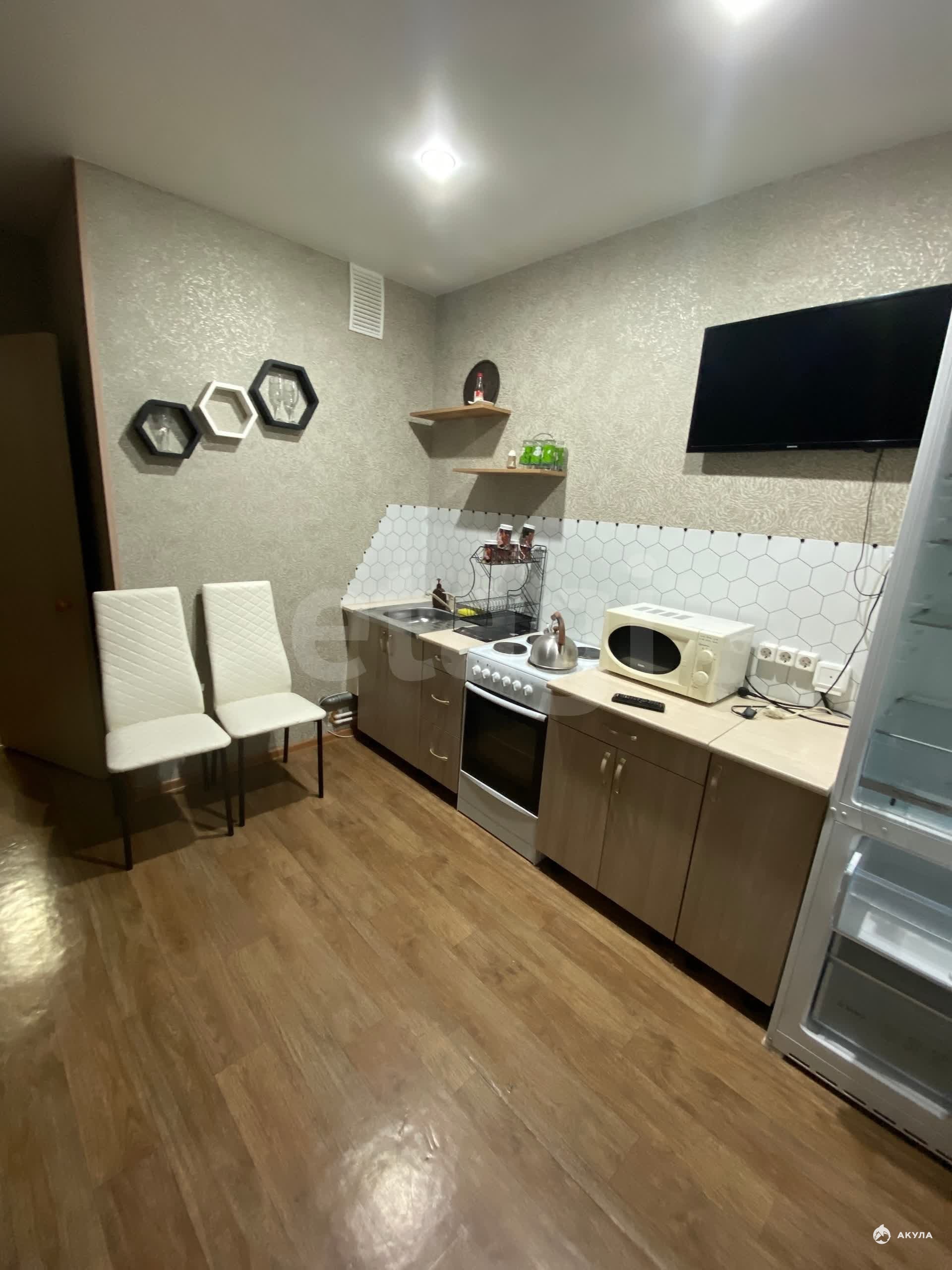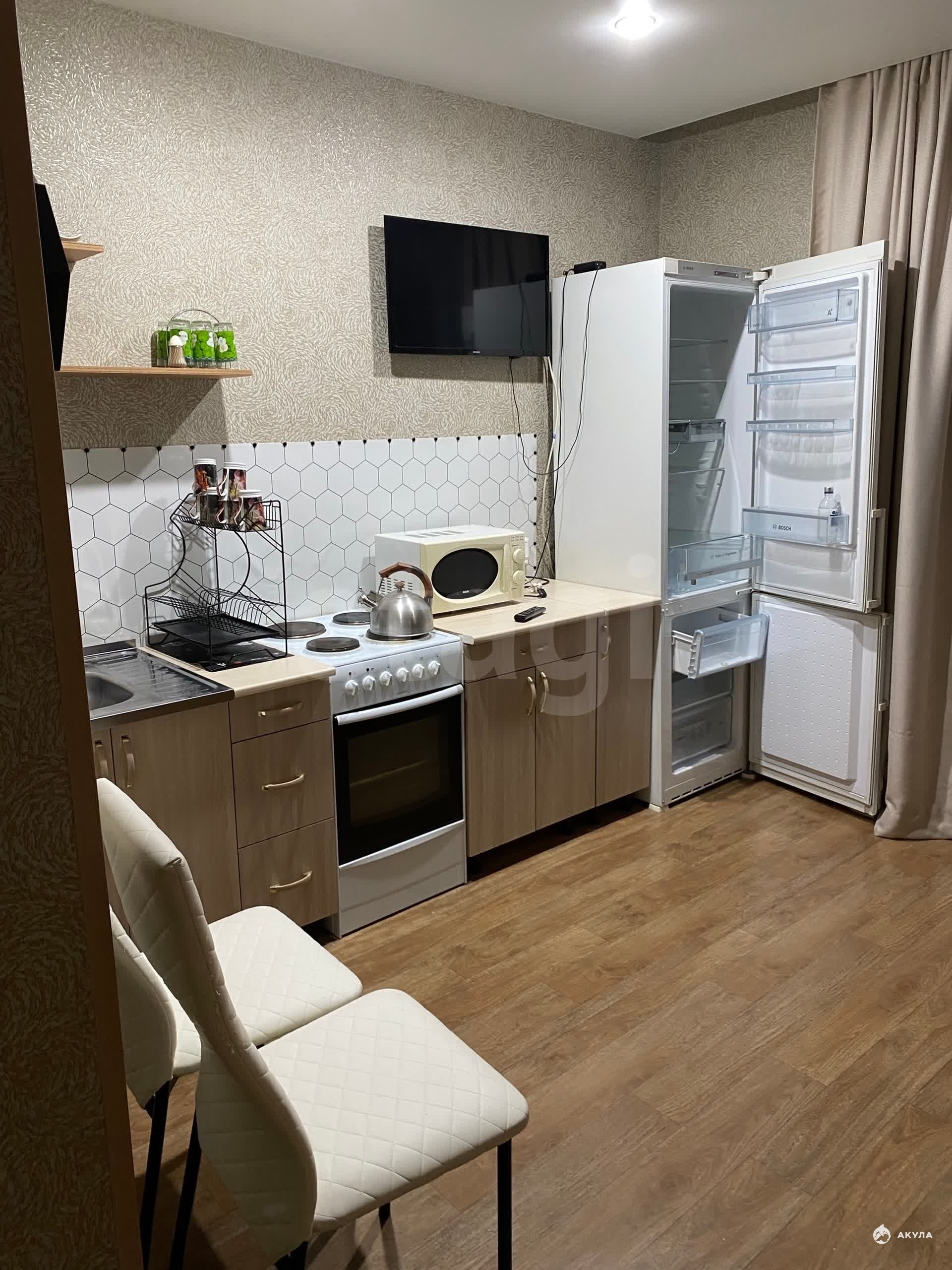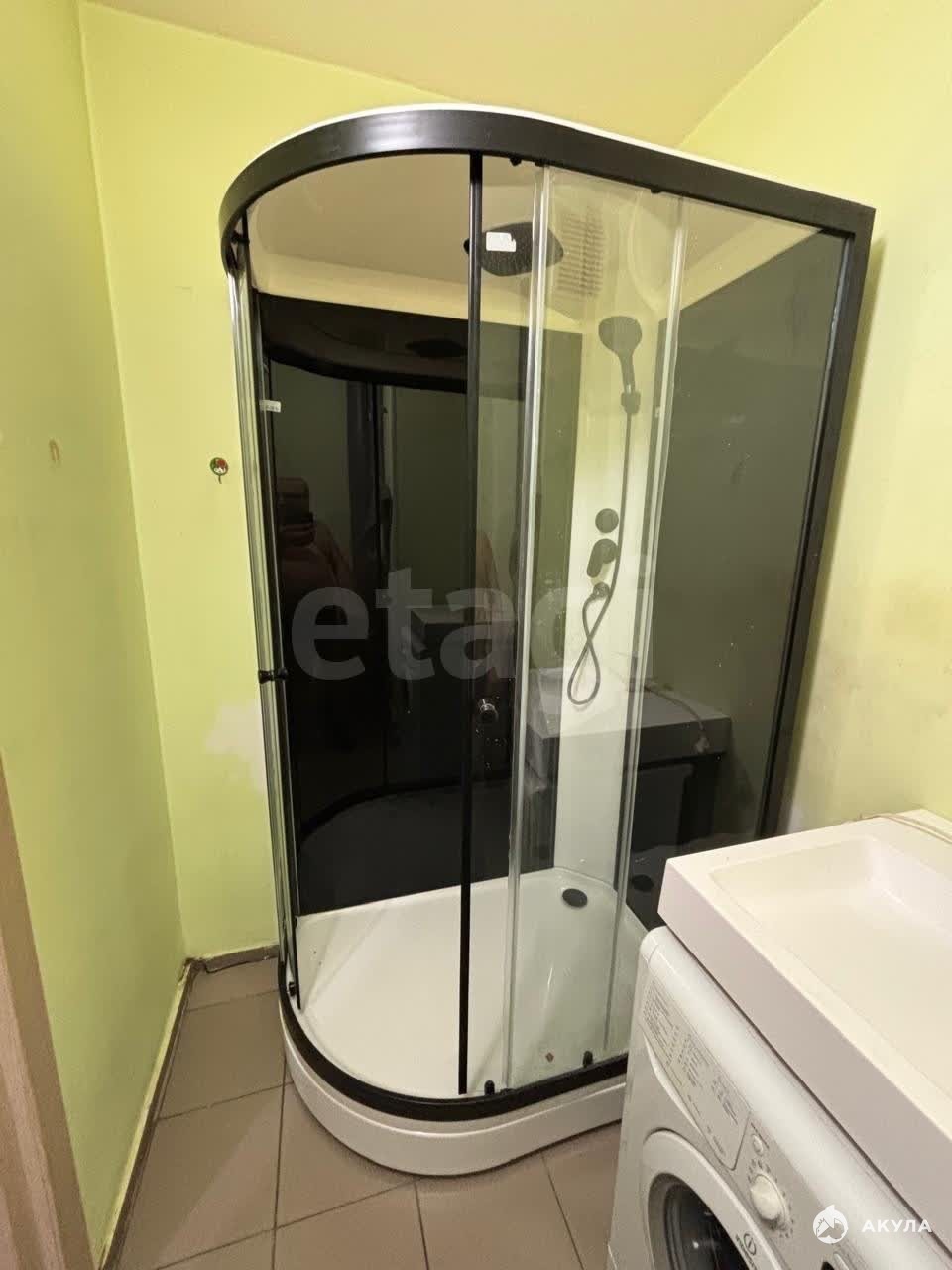 В квартире есть все необходимое для проживания- диван, шкаф, микроволновка, стиральная машинка, душевая кабинка, холодильник, электронная плита, телевизор