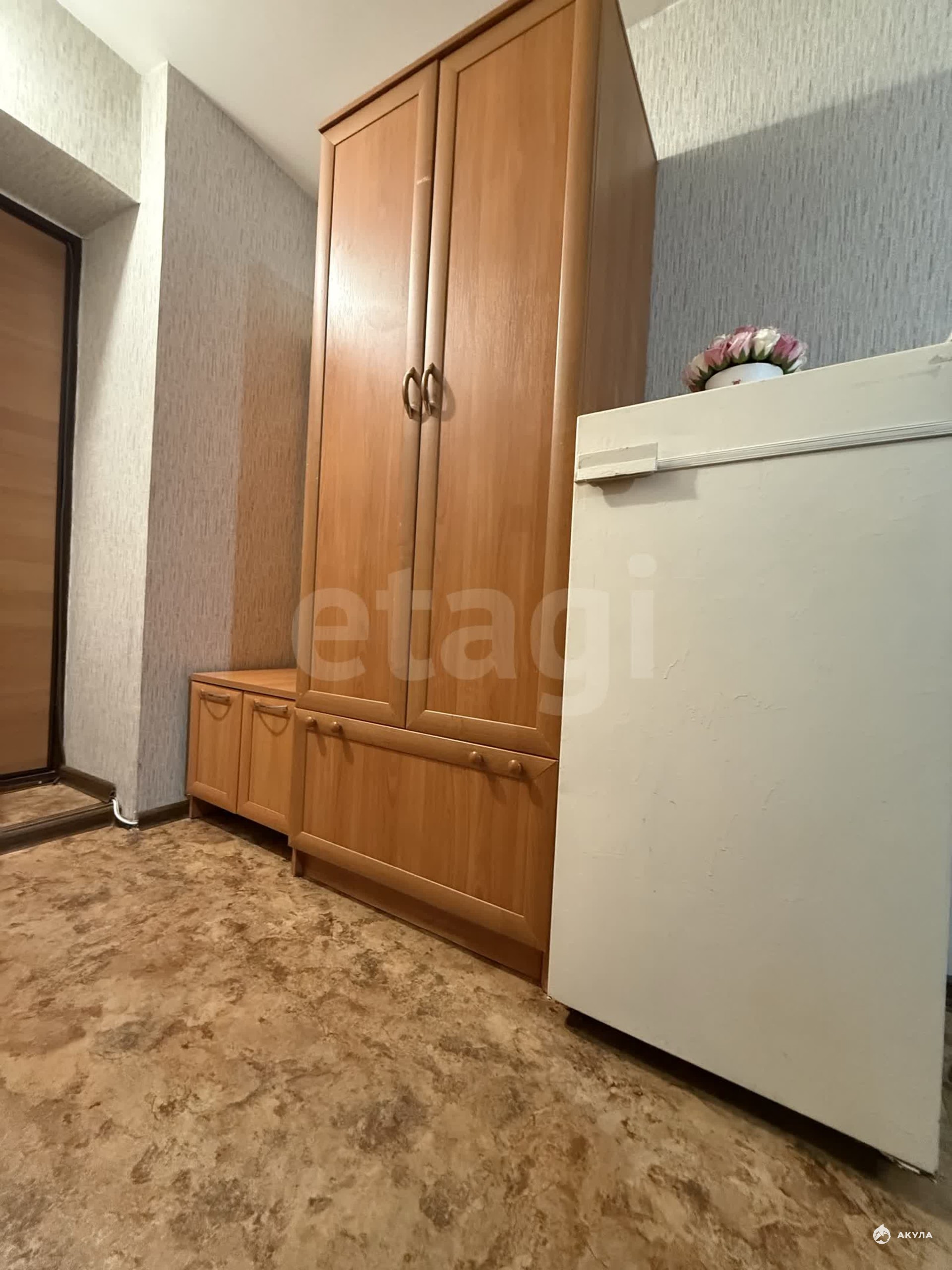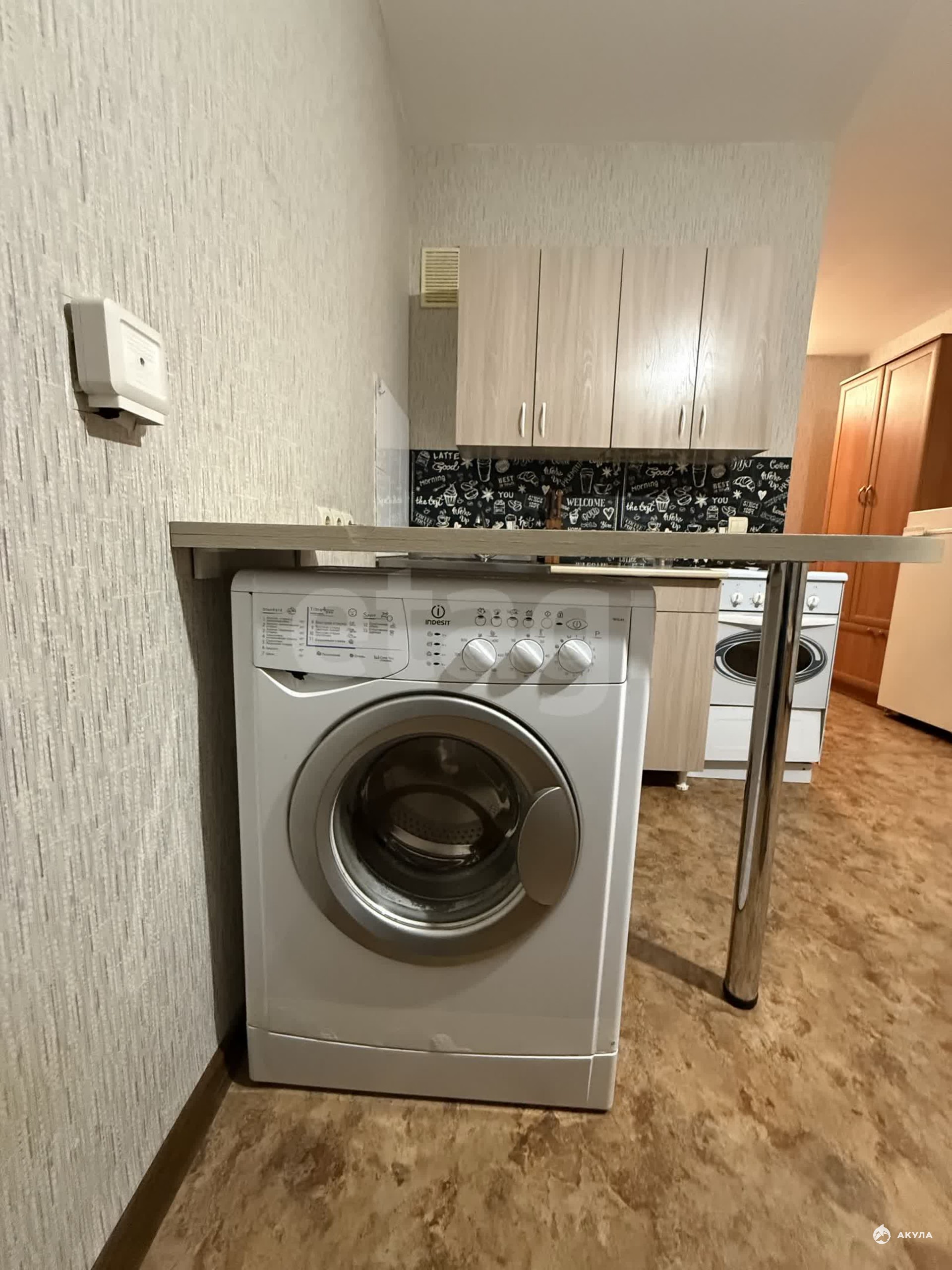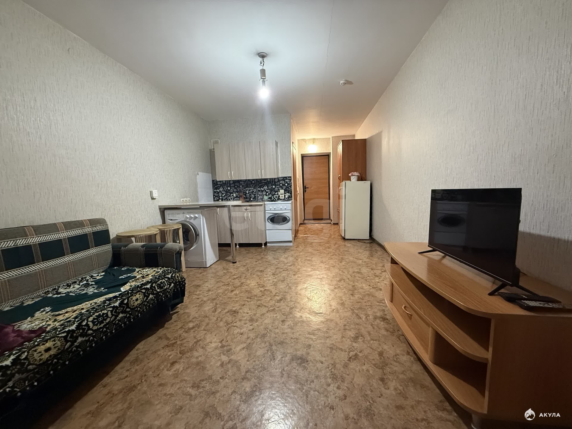 В квартире имеется вся необходимая техника и мебель: кухонный гарнитур, кухонный стол, стулья, электрическая плита с духовым шкафом, холодильник, диван, телевизор, шкаф, стиральная машинка.