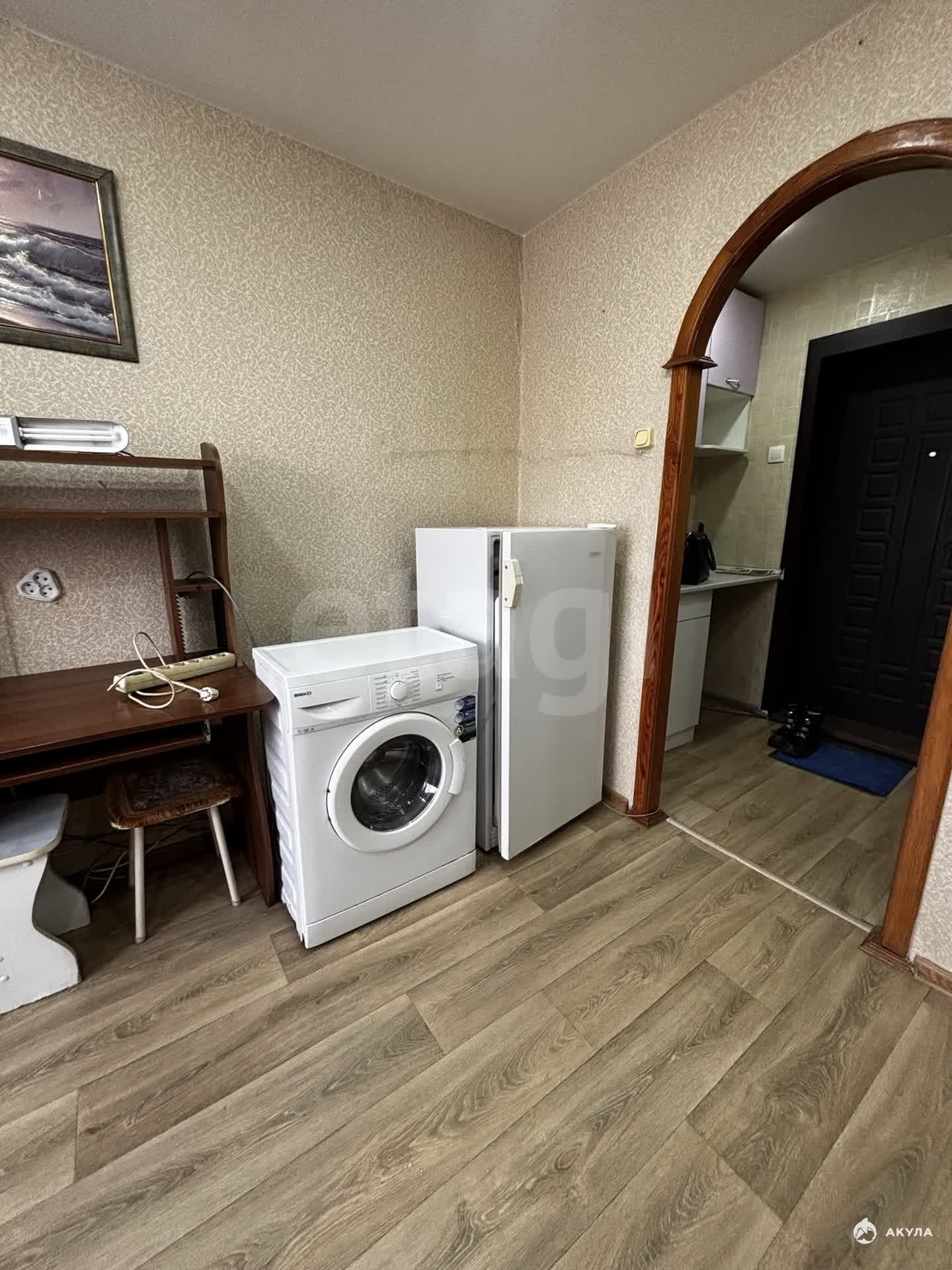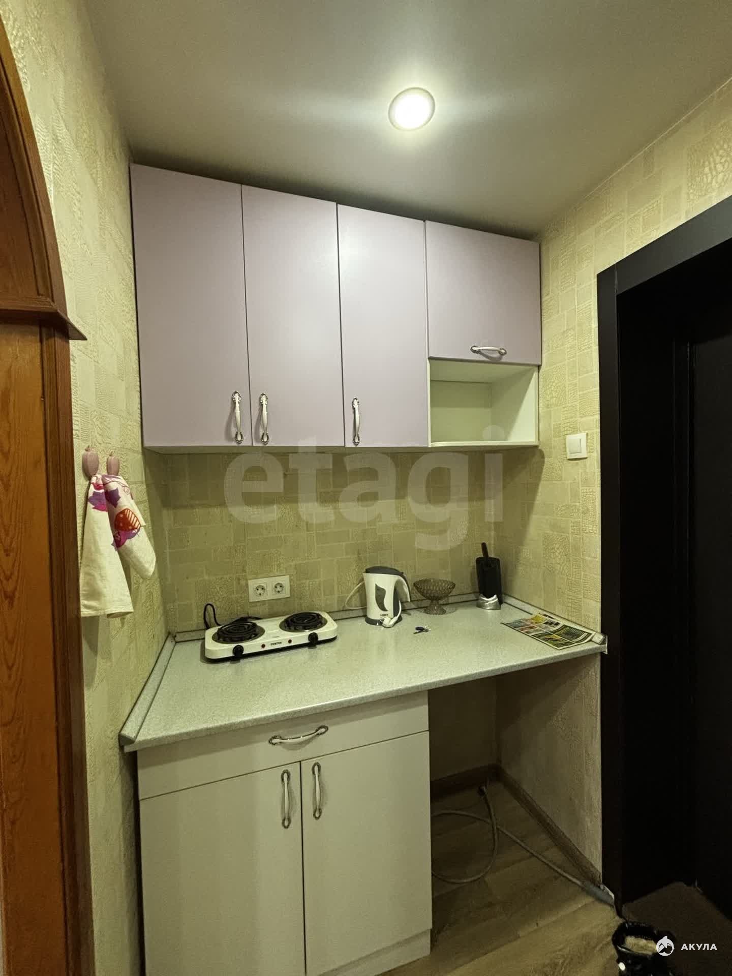 Техника: Стиральная машинка, двухкомфорочная плита, чайник, холодильник.