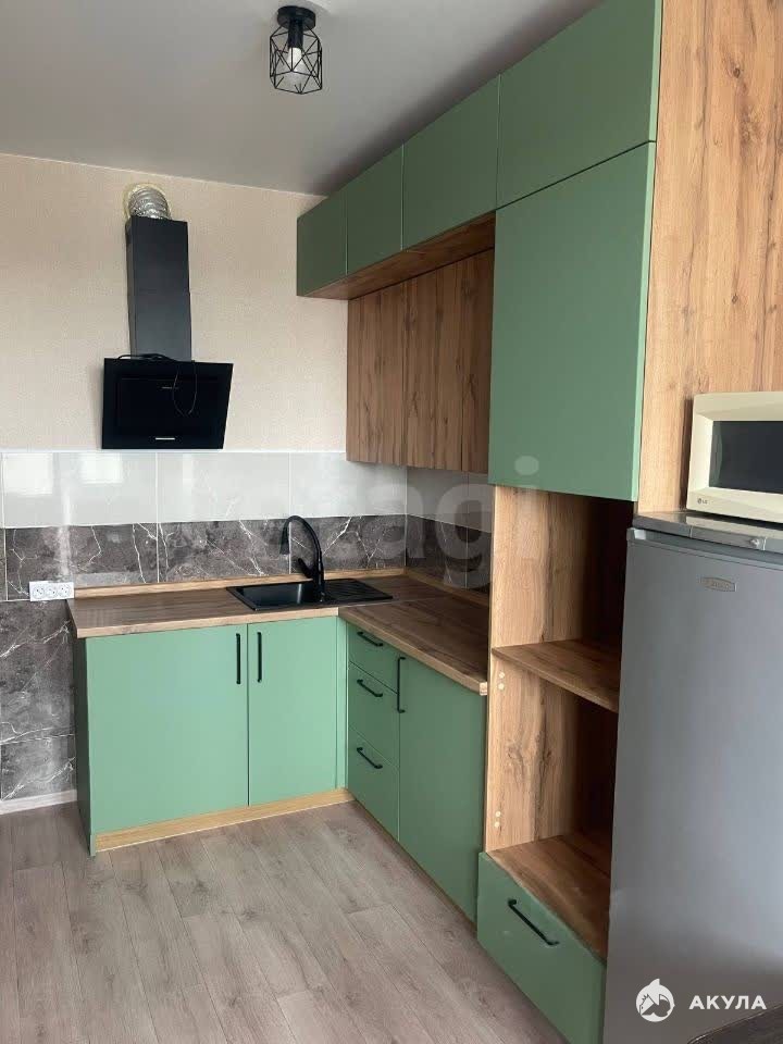 Внутри есть все необходимое для комфортного проживания: холодильник, стиральная машина, телевизор . Из мебели — комод и кровать. Просторная кухня абсолютно новая.