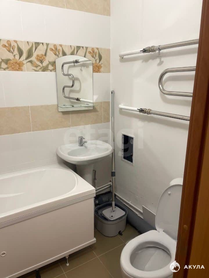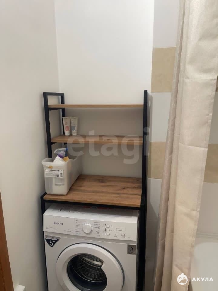 Санузел совмещенный, оборудован ванной и стиральной машиной. Балкон застеклен.