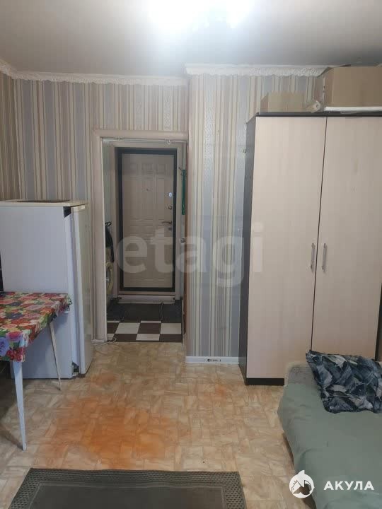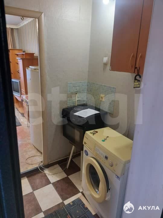 Квартира полностью меблирована и оснащена необходимой техникой: раскладной диван, горка под телевизор, обеденный стол, холодильник, шкаф, телевизор старого типа, микроволновка, электрическая плита, автоматическая стиральная машинка.