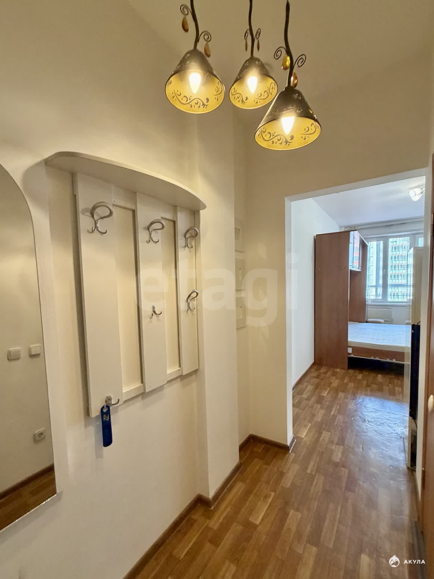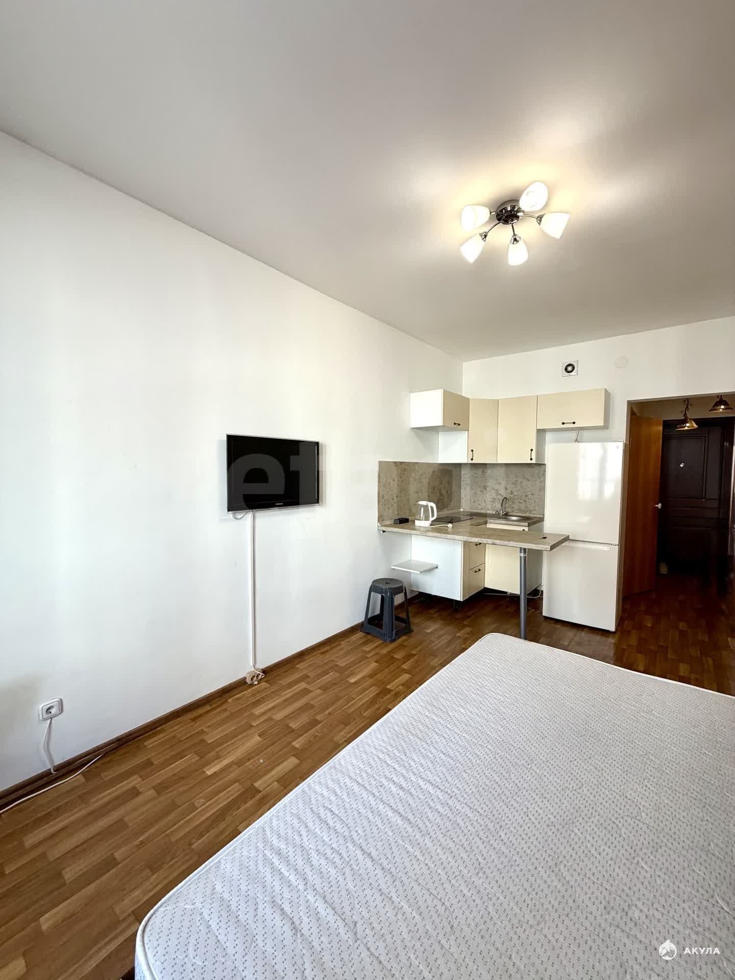 В квартире имеется: кухонный гарнитур, барная стойка, стулья, холодильник, плита, чайник, телевизор шкаф-диван раскладной, прихожая, стиральная машинка.