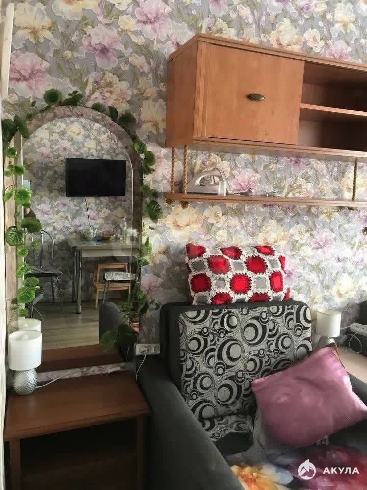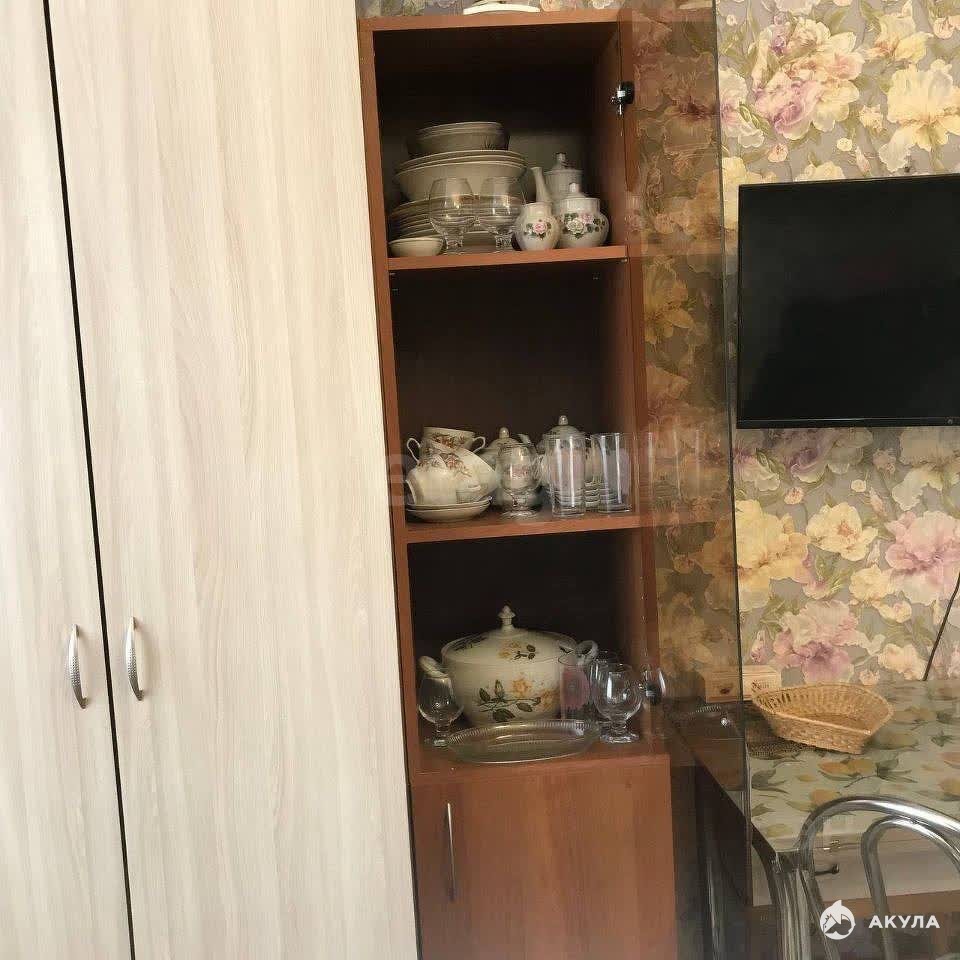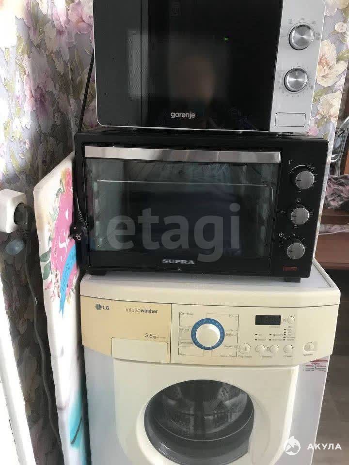 В квартире имеется: Диван, шкаф, кухонный гарнитур, плита, стиральная машинка, холодильник, микроволновка, телевизор.