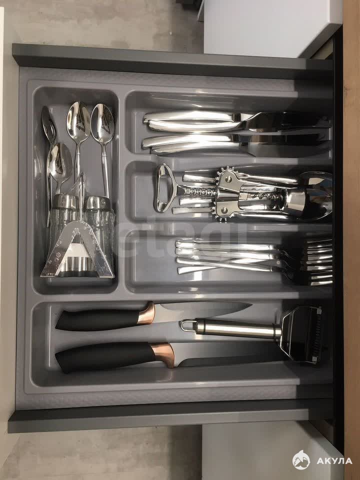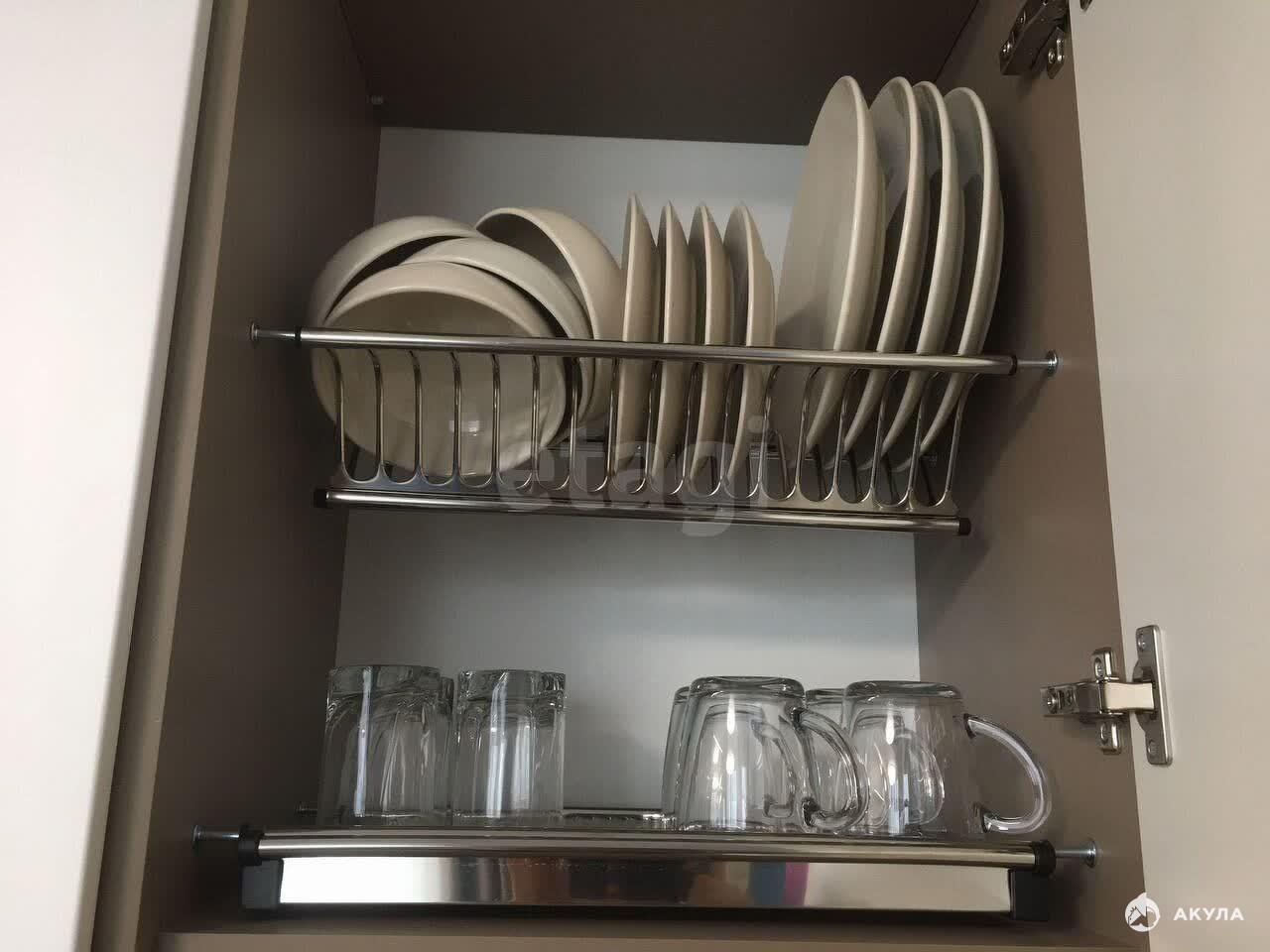 4. Места хранения в шкафах прихожей, гостиной, в основании кровати с подъёмным механизмом, шкафы в кухонном гарнитуре и в ванной комнате