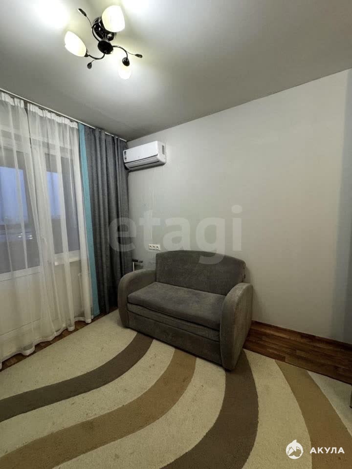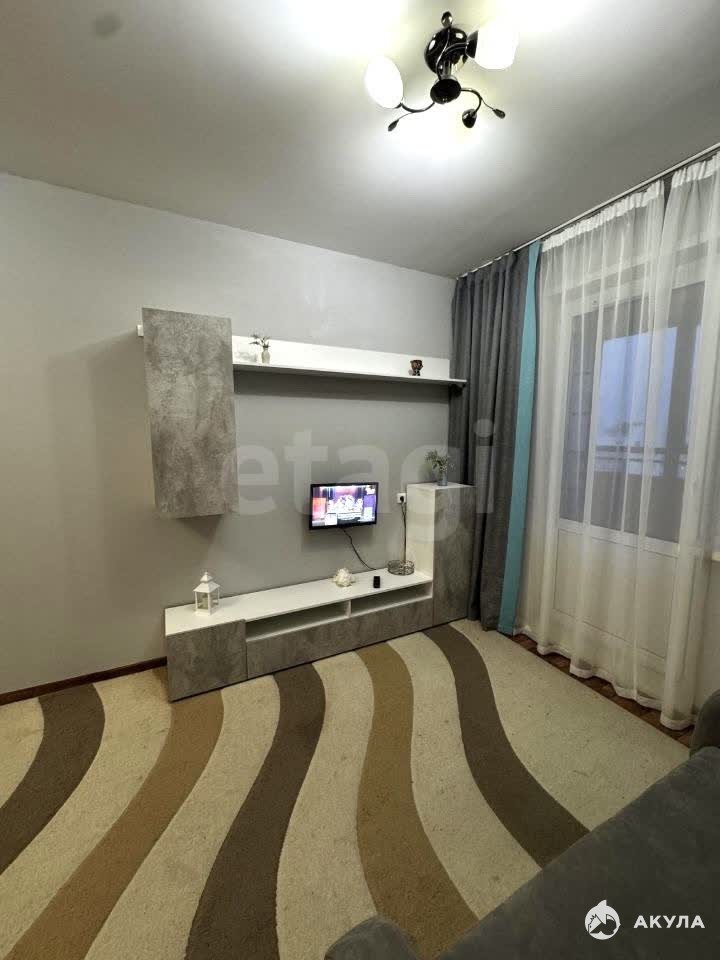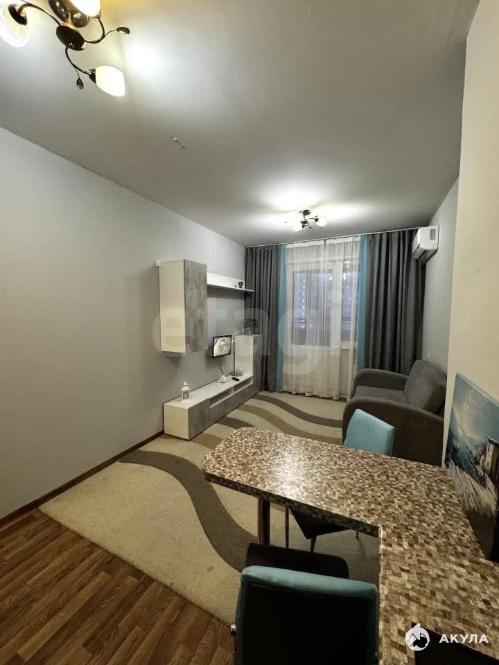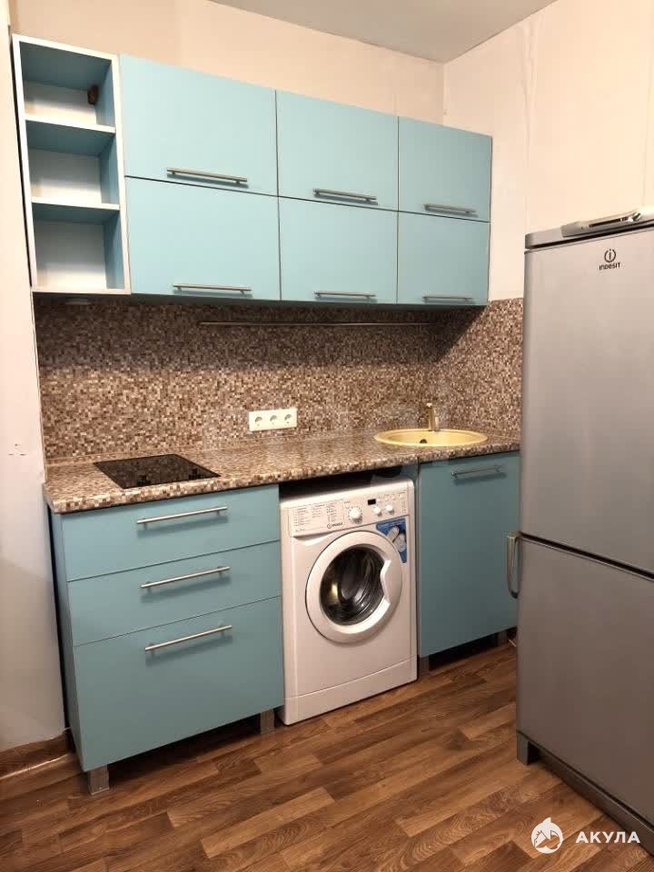 В квартире имеется: кухонный гарнитур, обеденная столешница, стулья, варочная панель, стиральная машинка, холодильник, диван, шкаф-стенка, телевизор, кондиционер.