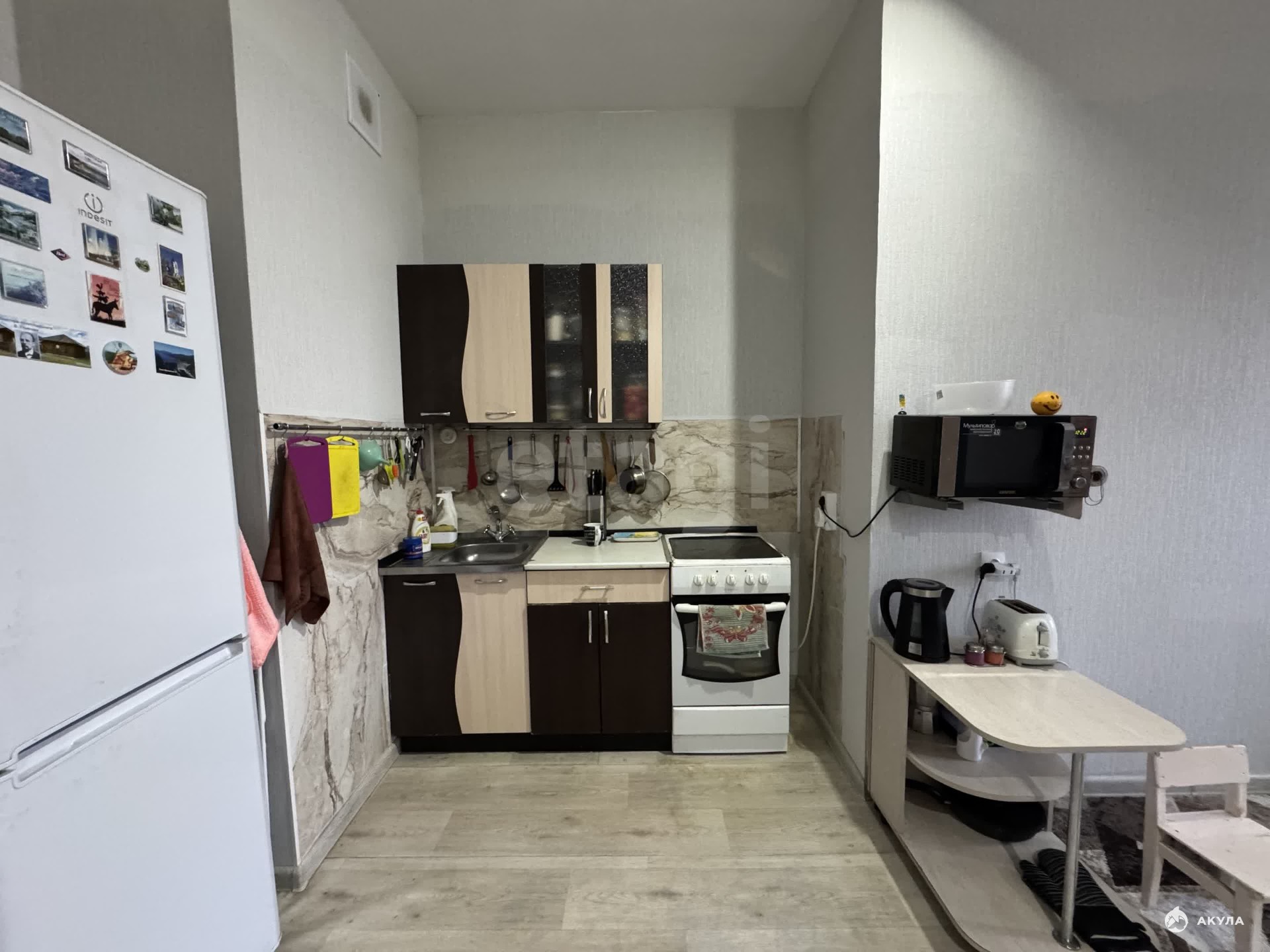 Останется в подарок новым покупателям : кухонный гарнитур , электрическая плита, холодильник , обеденный стол и стулья, шкаф в коридоре , диван и горка .Все в отличном состоянии.