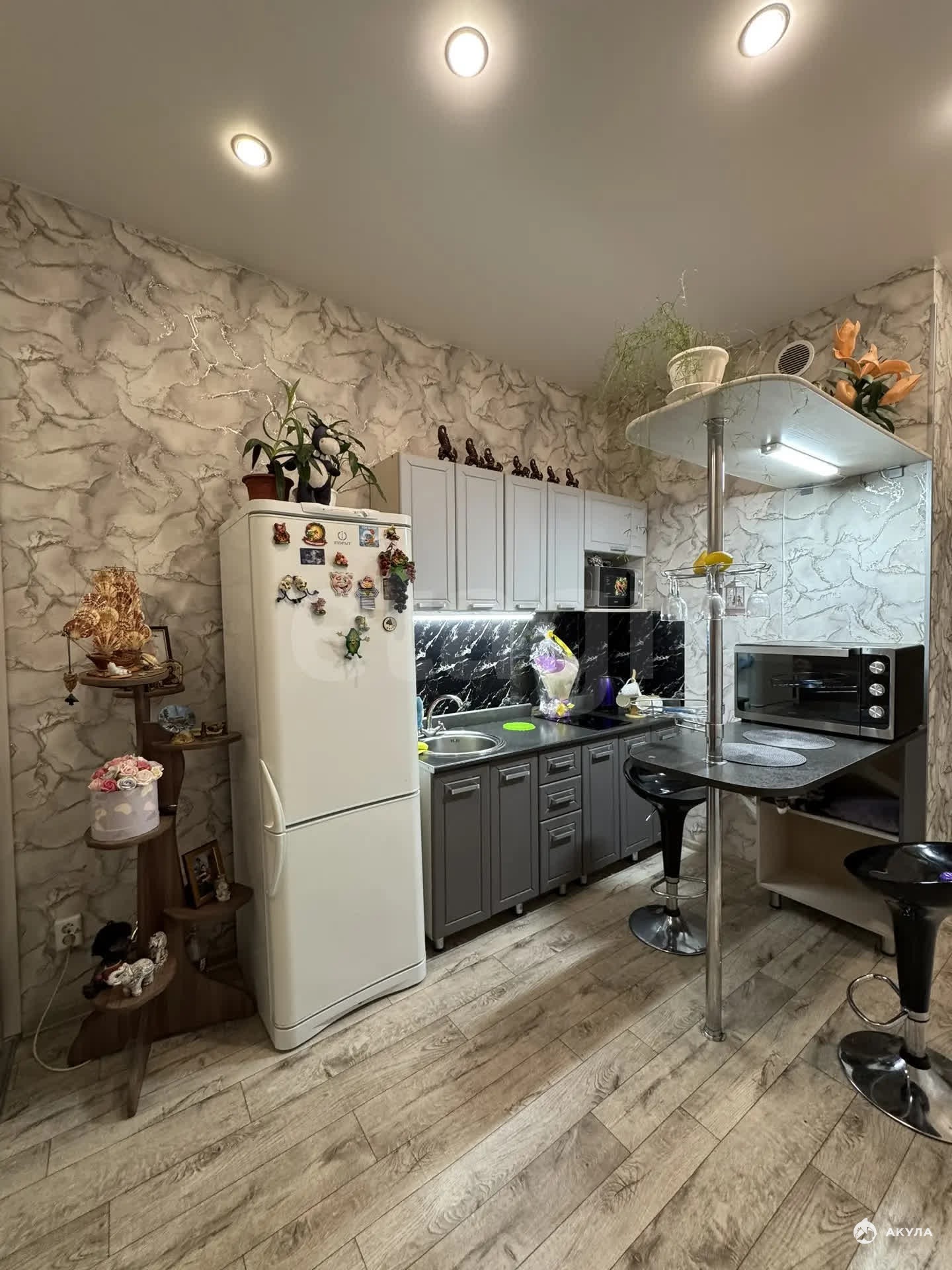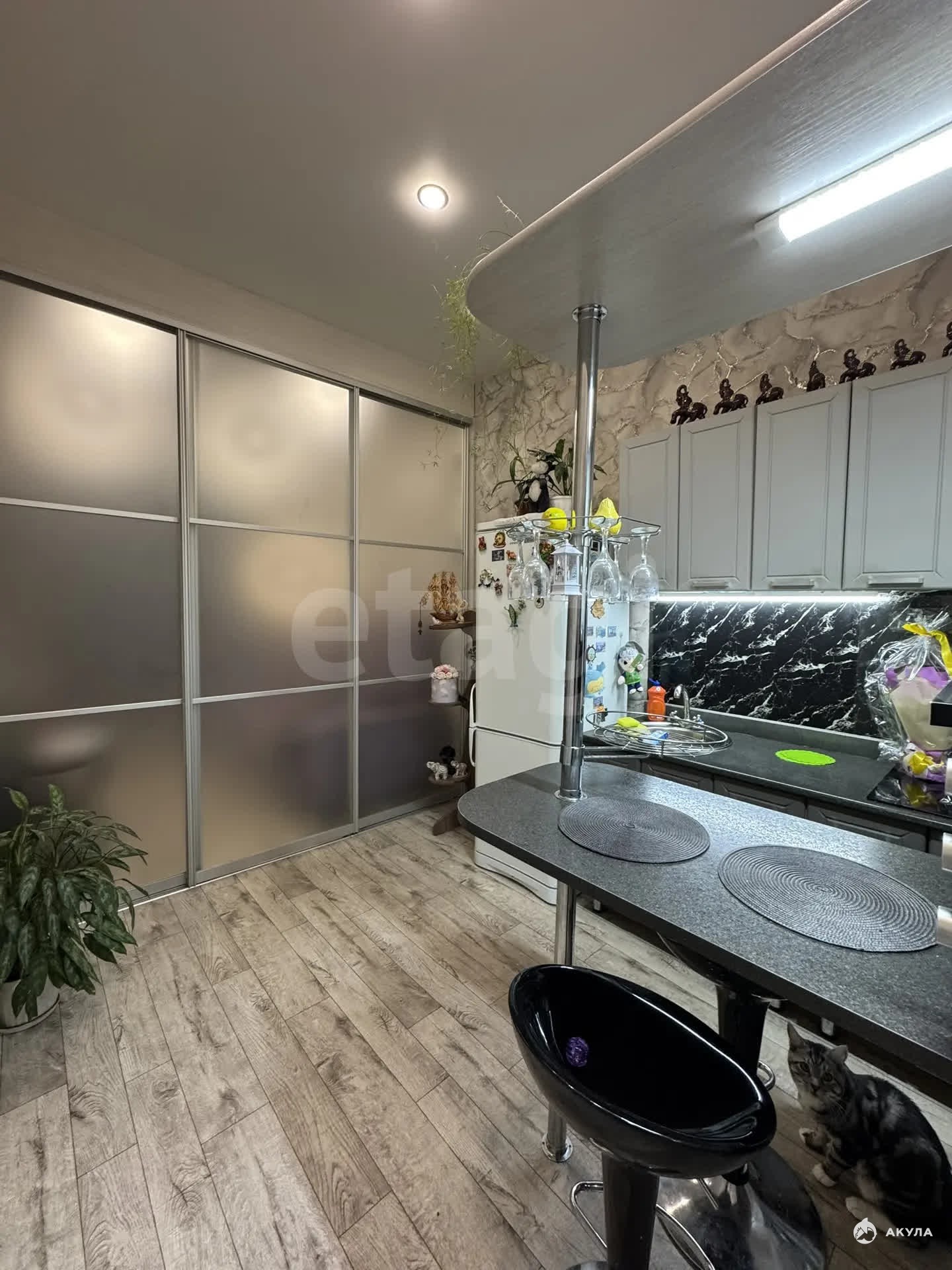 Остается очень большой шкаф, (удобный т функциональный и вместительный , кухонный гарнитур с варочной панелью , и барная стойка. остальная мебель по договоренности .