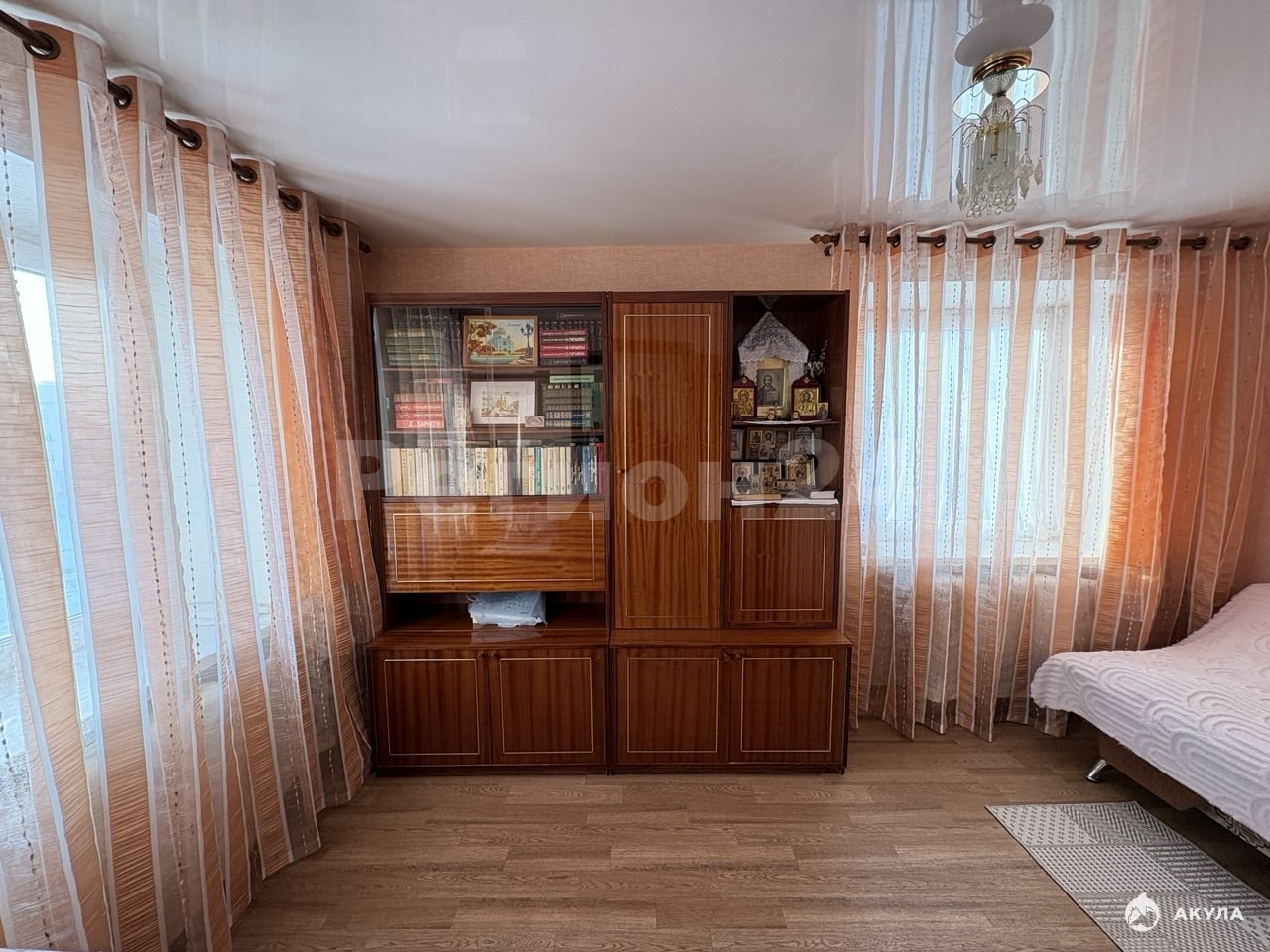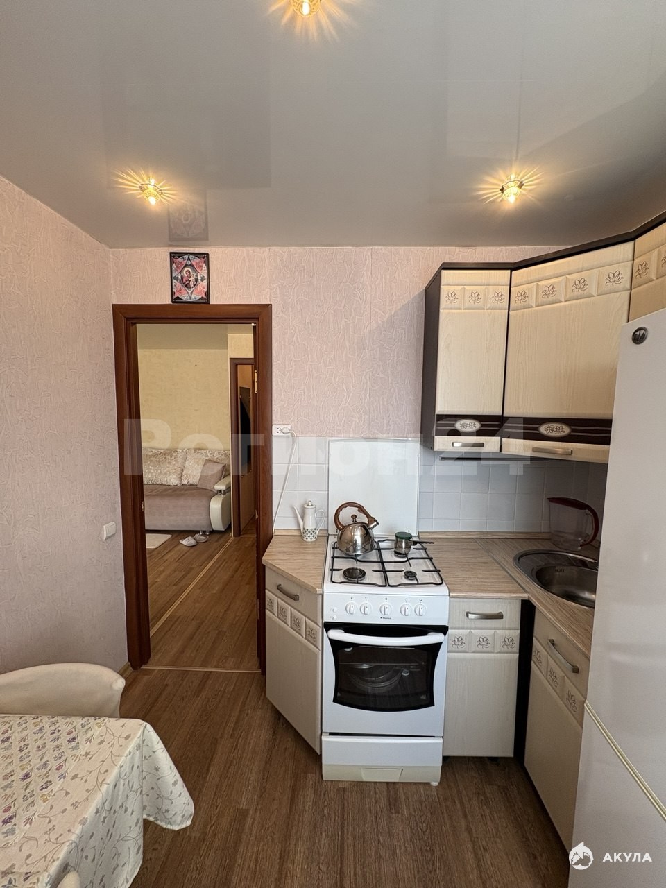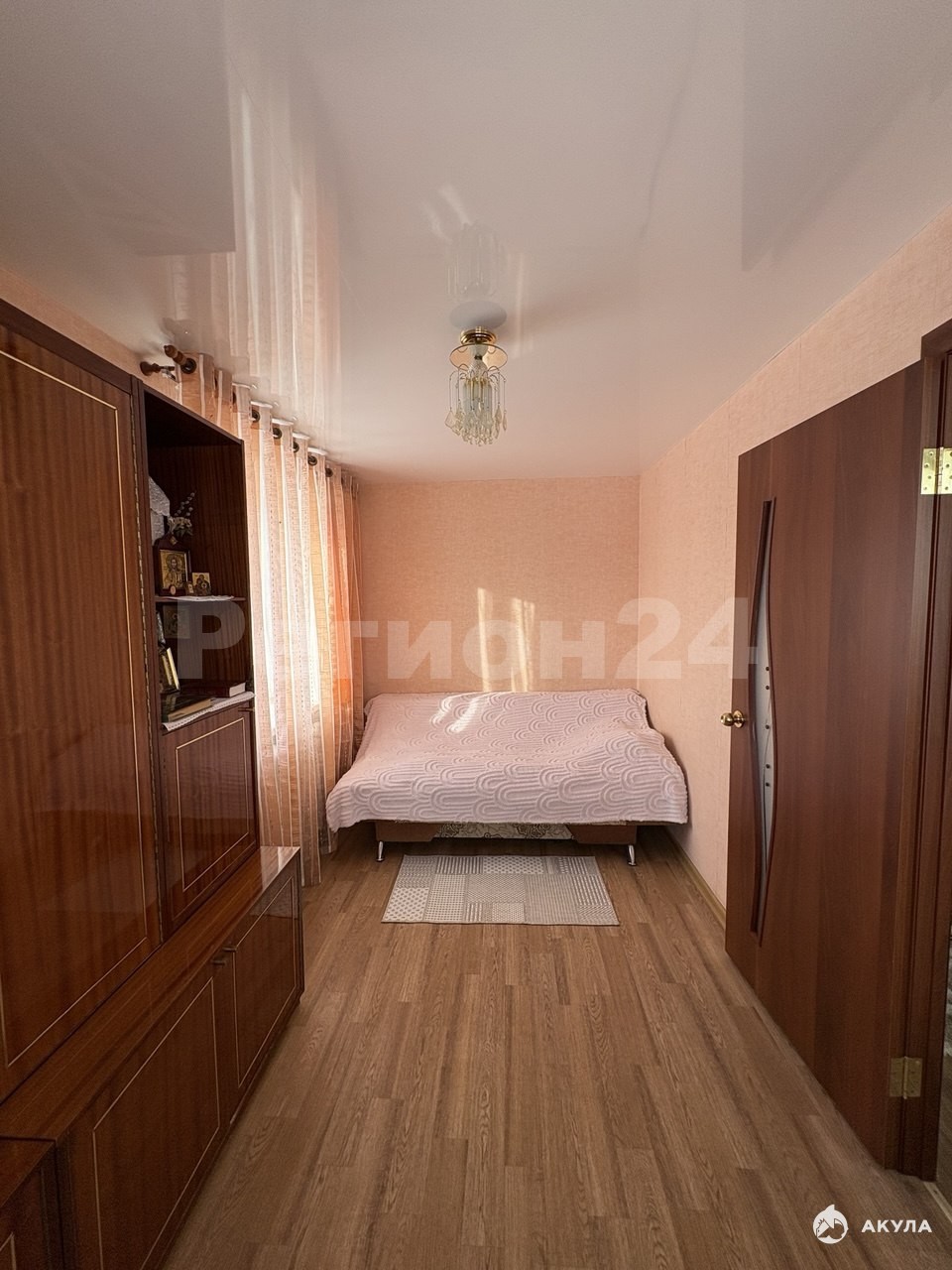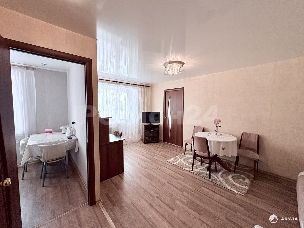 На полу – линолеум, обеспечивающий тепло и долговечность. Санузел отделан кафелем, сантехника и трубы заменены. Электропроводка полностью обновлена, стены и полы выровнены для вашего удобства.